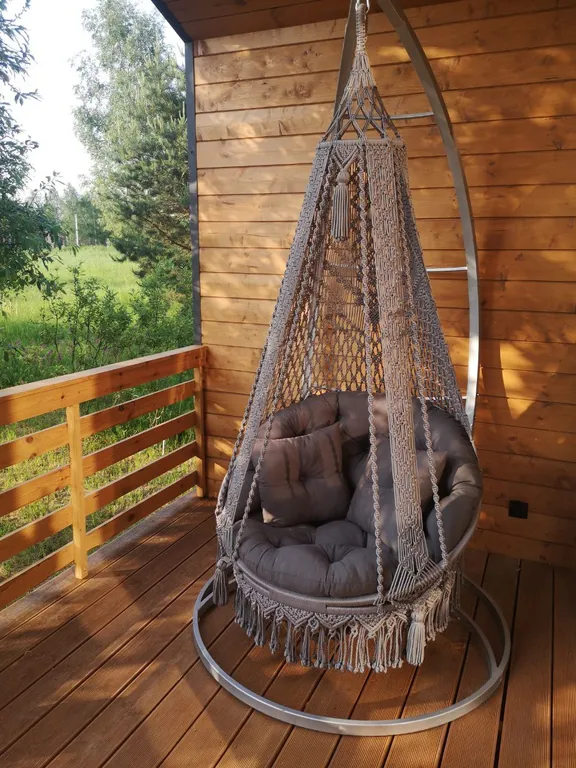 Открытая терраса – уличная мебель, подвесное кресло ручной работы, мангальная зона.