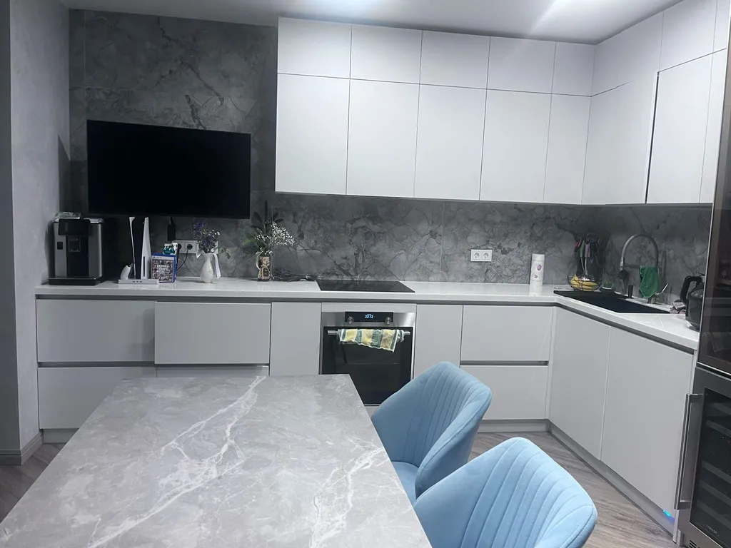 Бытовая техника: холодильник, плита, духовой шкаф, посудомоечная машина; кондиционер, утюг, фен. Кухня-гостиная оборудована всей необходимой посудой и техникой;