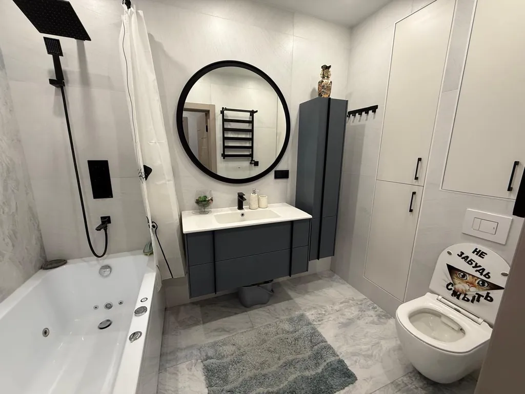 Дополнительно: 2 просторных гардеробных, 2 сан. узла, просторная ванная с джакузи, махровые полотенца, свежее постельное бельё, полный комплект посуды и столовых приборов. Развитая инфраструктура вокруг. Удобная транспортная доступность.