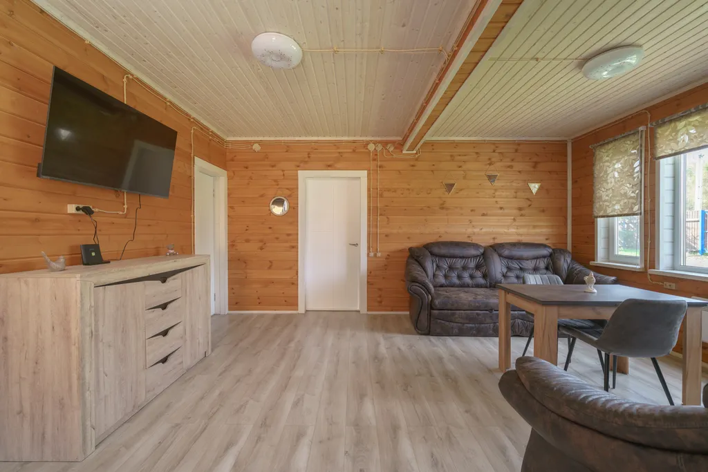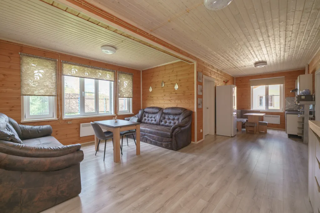 На первом этаже: прихожая, большая кухня-гостиная, 2 спальни, туалет.