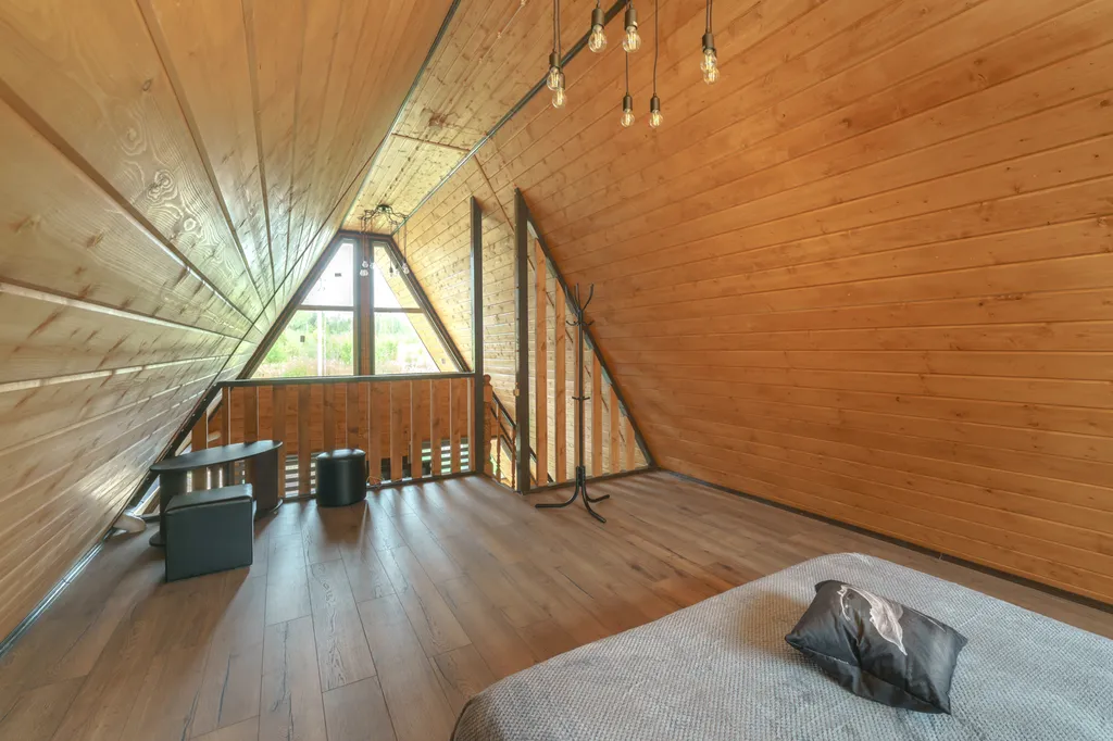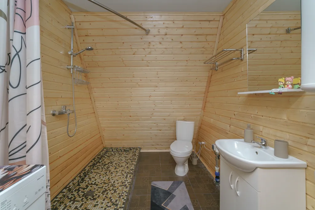 На первом этаже: прихожая, большая кухня-гостиная, 2 спальни, туалет, веранда.