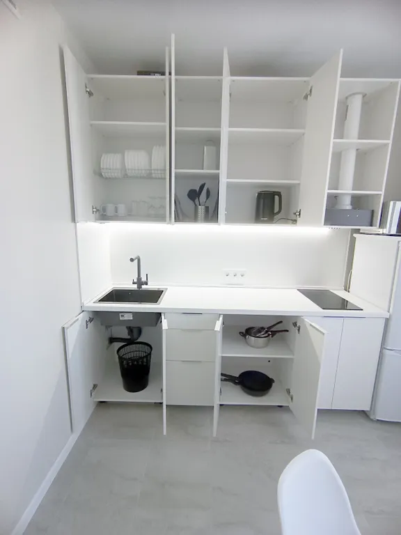 Техника: свч, стиральная машина, плита, холодильник, телевизор, утюг с гладильной доской, фен, чайник, высокоскоростной wi-fi, умывальные принадлежности и пр.
