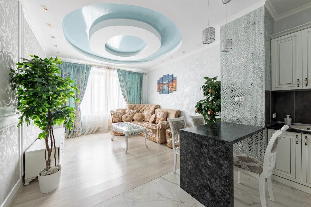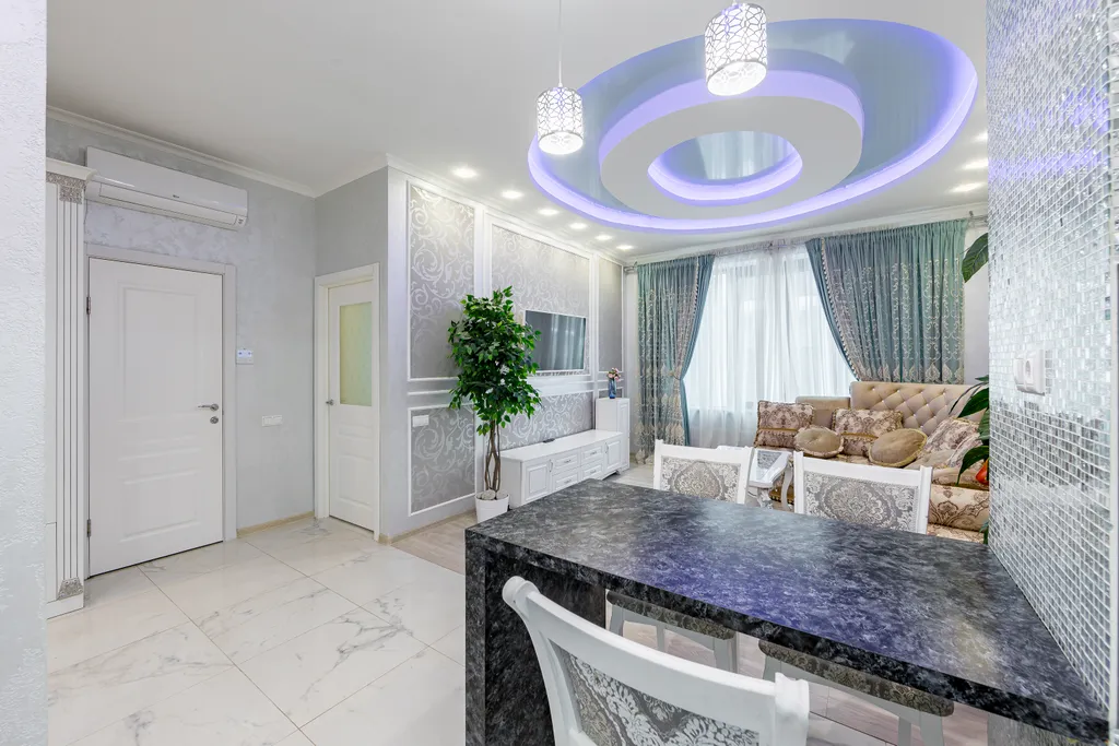 - Просторная квартира с современным дизайном и качественной мебелью.