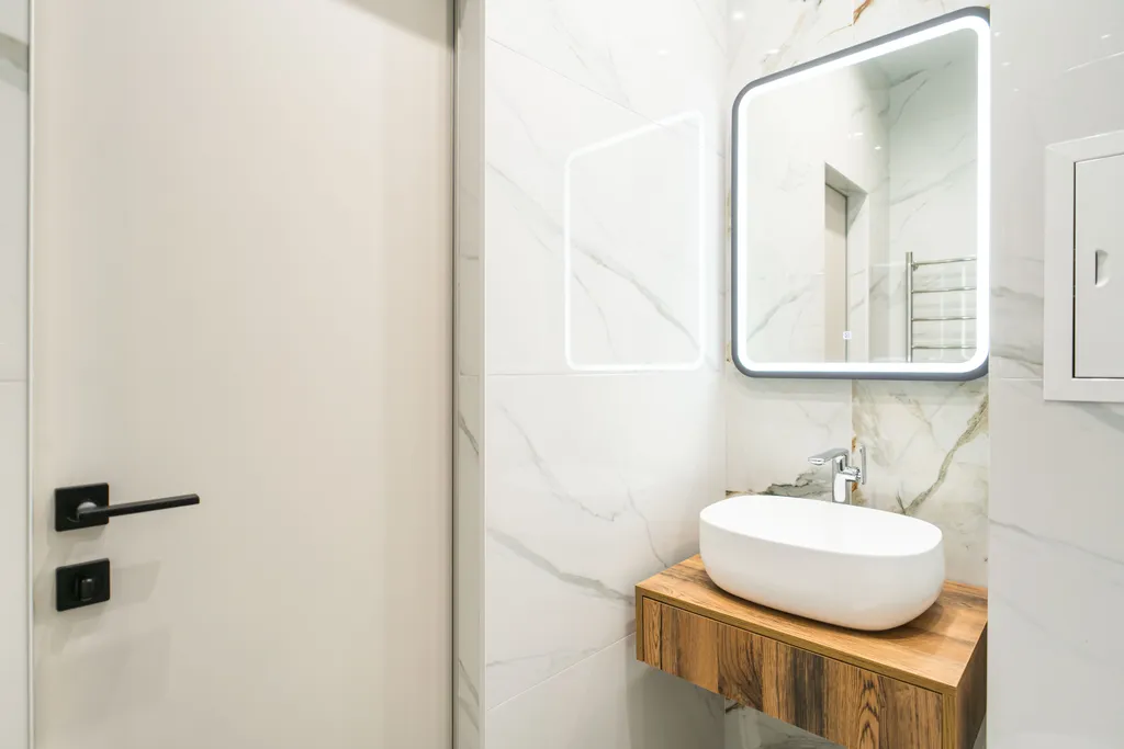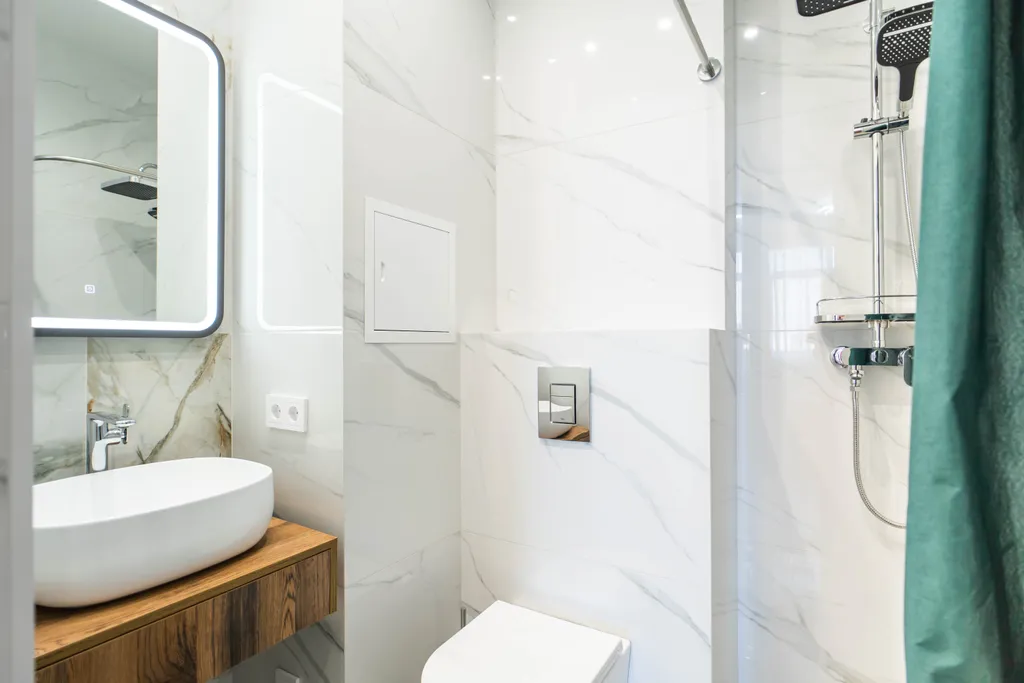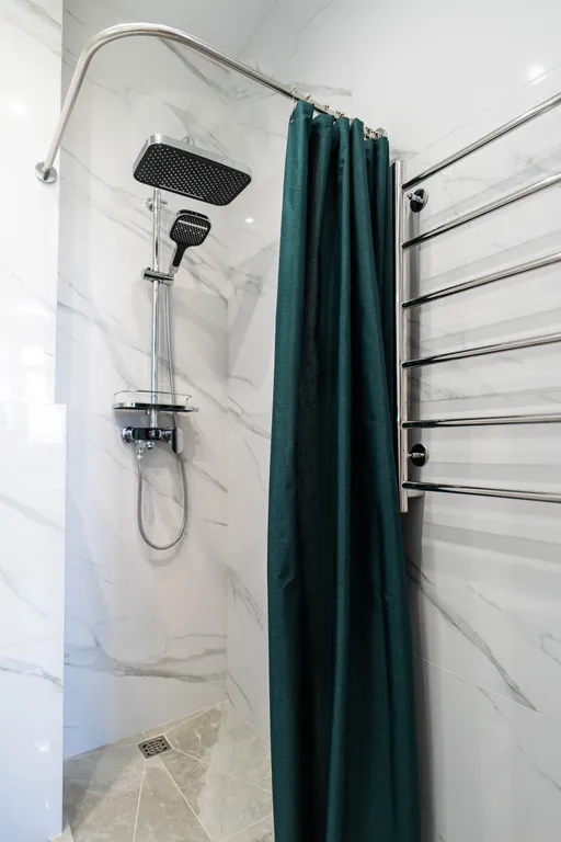 — Санузел с современной душевой зоной