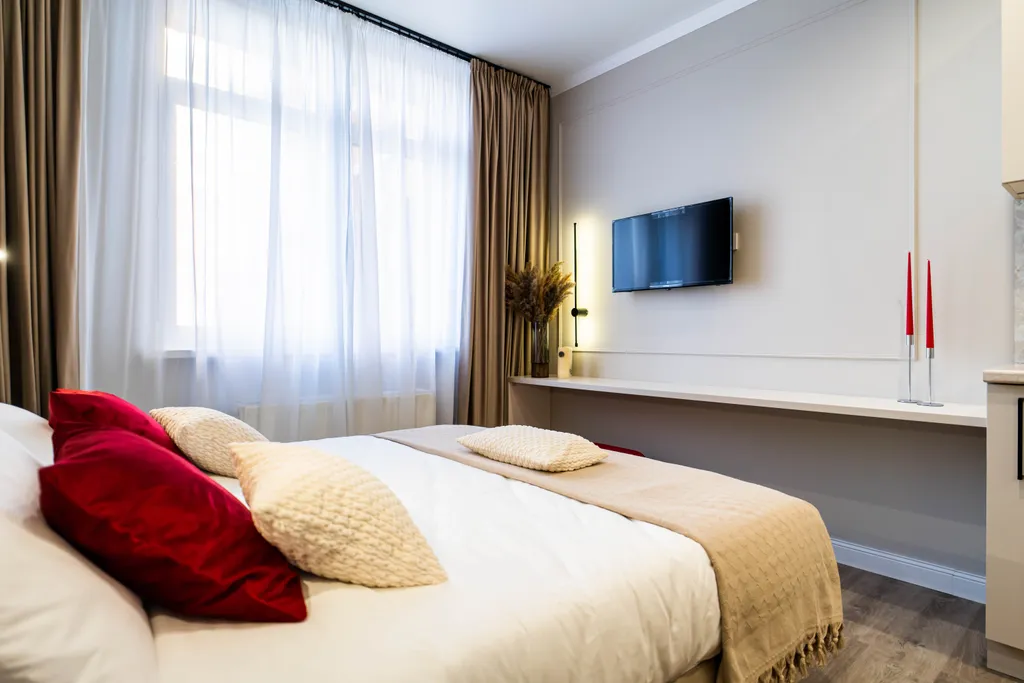 Уютная и светлая студия в новом жилом комплексе Римский Квартал. Интерьер выполнен в спокойных светлых тонах, всё выглядит аккуратно и современно. Отлично подойдёт для комфортного отдыха, командировки или короткого проживания.