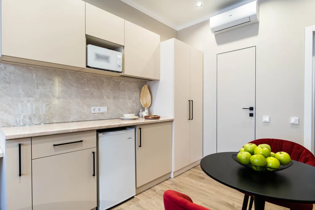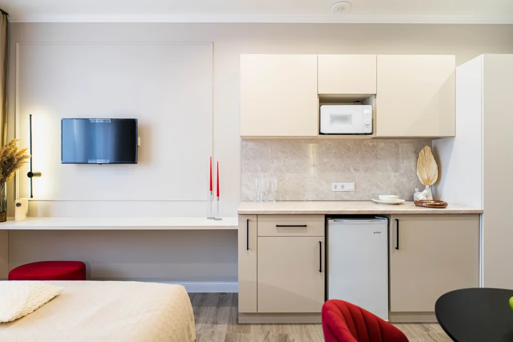 — Мини-кухня с индукционной плитой, СВЧ, холодильником, чайником