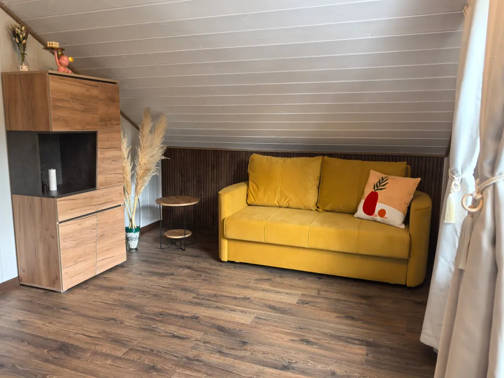 - Большой диван-кровать в гостиной