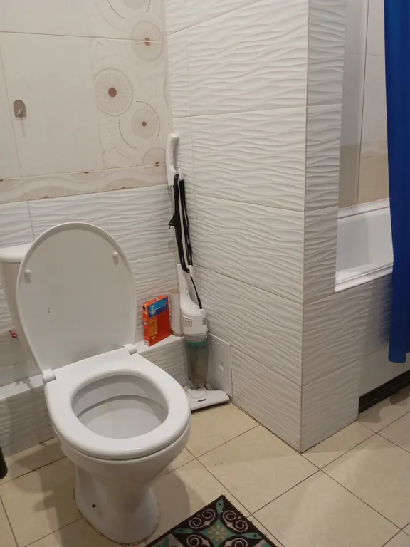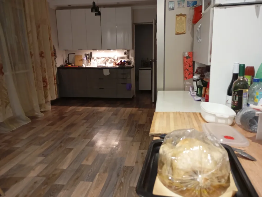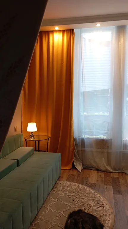 Вместо дверей: занавески и стеллаж книжный, поэтому проживание для пары м+ж будет некомфортным.