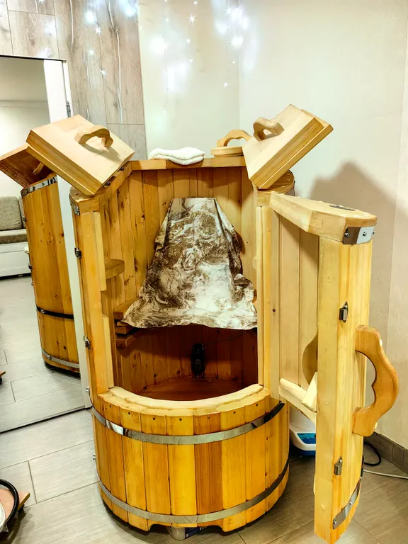 Бонусом возможность попариться в кедровой бочке, где температура регулируется персонально. (Видеоинструкция по запуску и управлению присылаю)