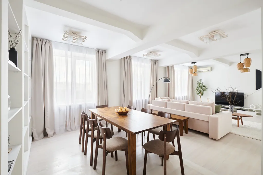 Патриаршие пруды — это место, где хочется не просто гулять, а жить. Эта четырёхкомнатная квартира площадью 170 м² в доме 1934 года в стиле конструктивизма предлагает вам не просто ночлег, а настоящее пространство для жизни с видом на легендарный пруд. Вынесенные на фасад лифты — архитектурная деталь, которая делает этот дом узнаваемым, а интерьер в стиле Бохо с новой мебелью создаёт атмосферу творческой свободы и уюта.