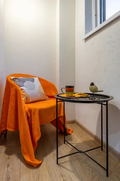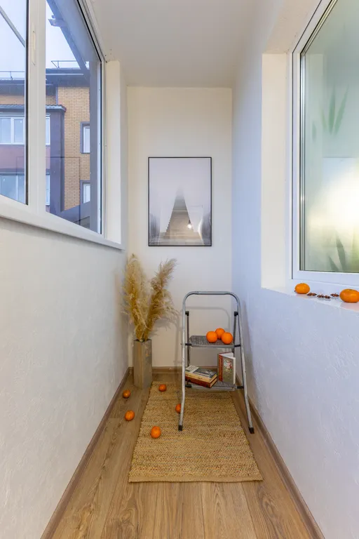 В тёплое время года (май — октябрь) балкон оформлен декором — фото в галерее.