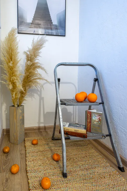 А ещё в студии живёт газовый котёл — он иногда шумит, как старый друг, а счётчик тихо тикает, создавая уникальный звуковой фон, как старинные настенные часы.