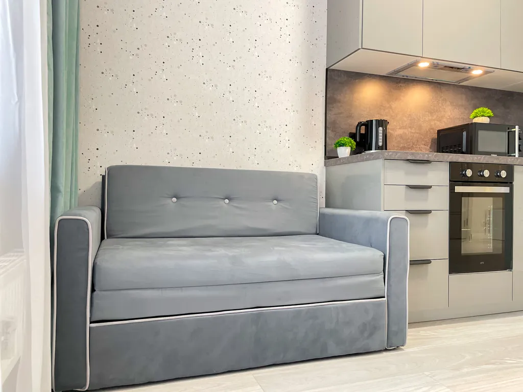 - Размещение: двуспальная кровать и диван-кровать.
