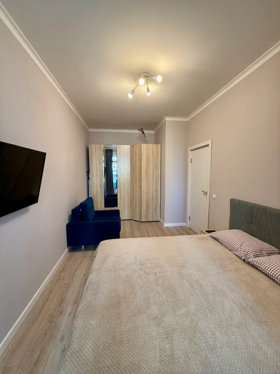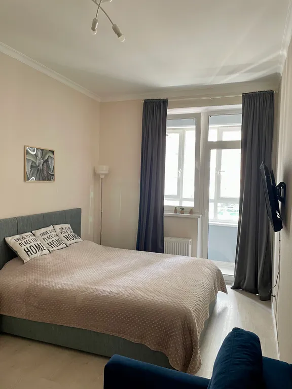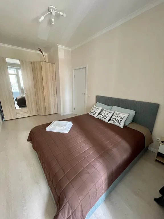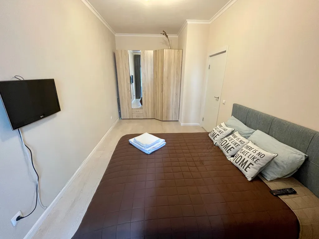 Размещение до 5 человек. Спальные места: двуспальная кровать (160 х 200) с ортопедическим матрасом Икеа, раскладывающийся диван (125 х 190) на кухне, кресло-кровать (195 х 70).