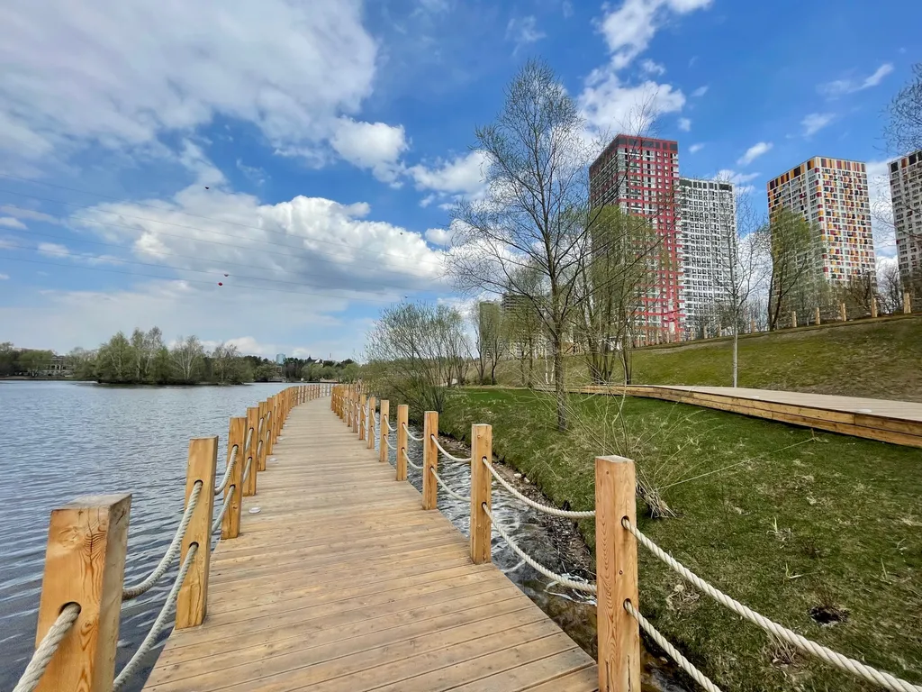 В жилом комплексе есть вся инфраструктура: магазины, аптеки, пекарня, кафе, бар, рестораны и салоны красоты, детские и спортивные площадки. Территория комплекса огорожена, охрана, ведётся видеонаблюдение. Живописная набережная Москвы-реки, удобные прогулочные зоны, свой пляж. В доме есть подземный паркинг (за дополнительную плату).