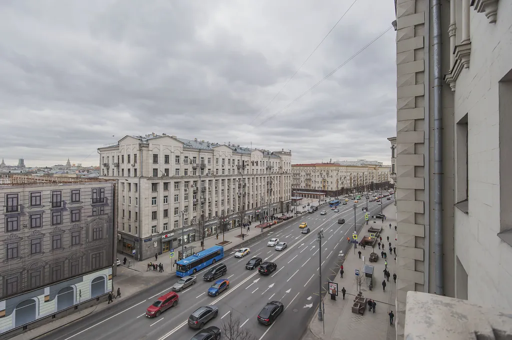 - Шикарный вид и балкон как преимущество: Ваш балкон — это не просто метр площади. Это личная ложа с панорамой на Тверскую. Смотрите на знаменитую улицу не как турист снизу, а как резидент, в чьём распоряжении целая глава московской истории.