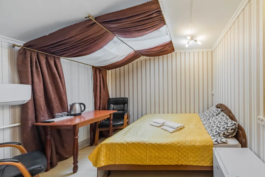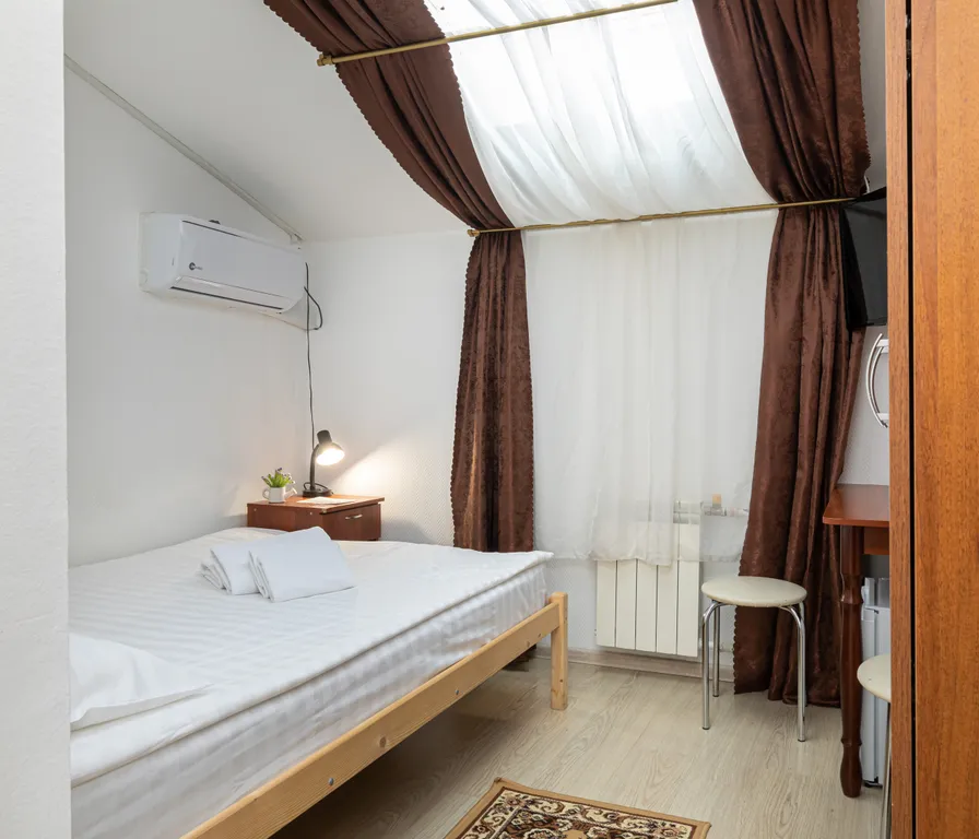 Номер оборудован всем необходимым: стол, кондиционер, телевизор, собственная ванная комната с душем, ванные принадлежности, тапочки, комплект полотенец и чистое постельное белье. В некоторых номерах окно мансардное, высокоскоростной wi-fi.