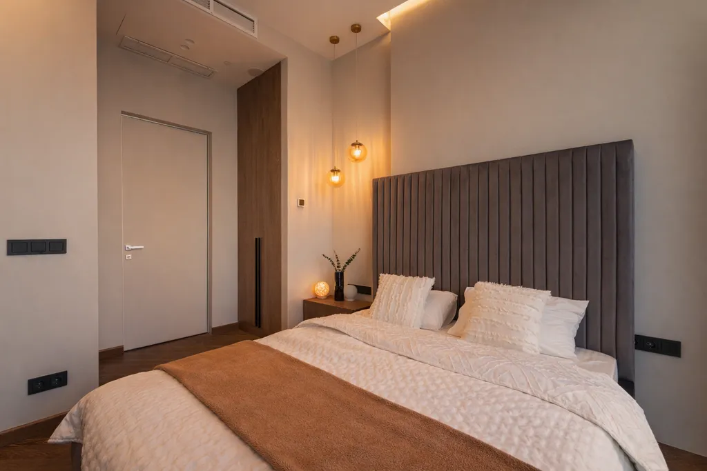 Апартамент оборудован всей необходимой техникой, а именно: кондиционер с системой климат-контроля, телевизор со Smart TV, высокоскоростной Wi-Fi, стиральная машина, утюг, гладильная доска, фен, и, конечно же, в каждой комнате шторы black-out.