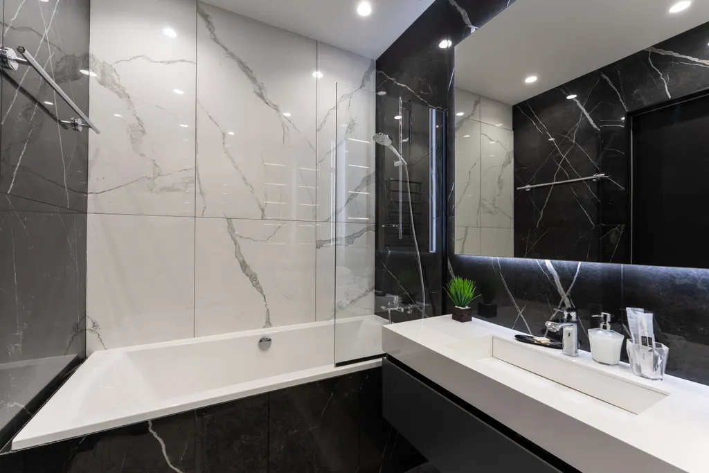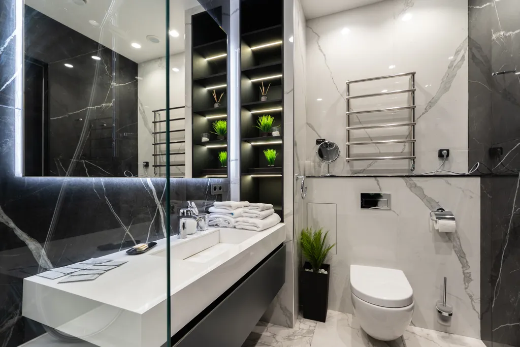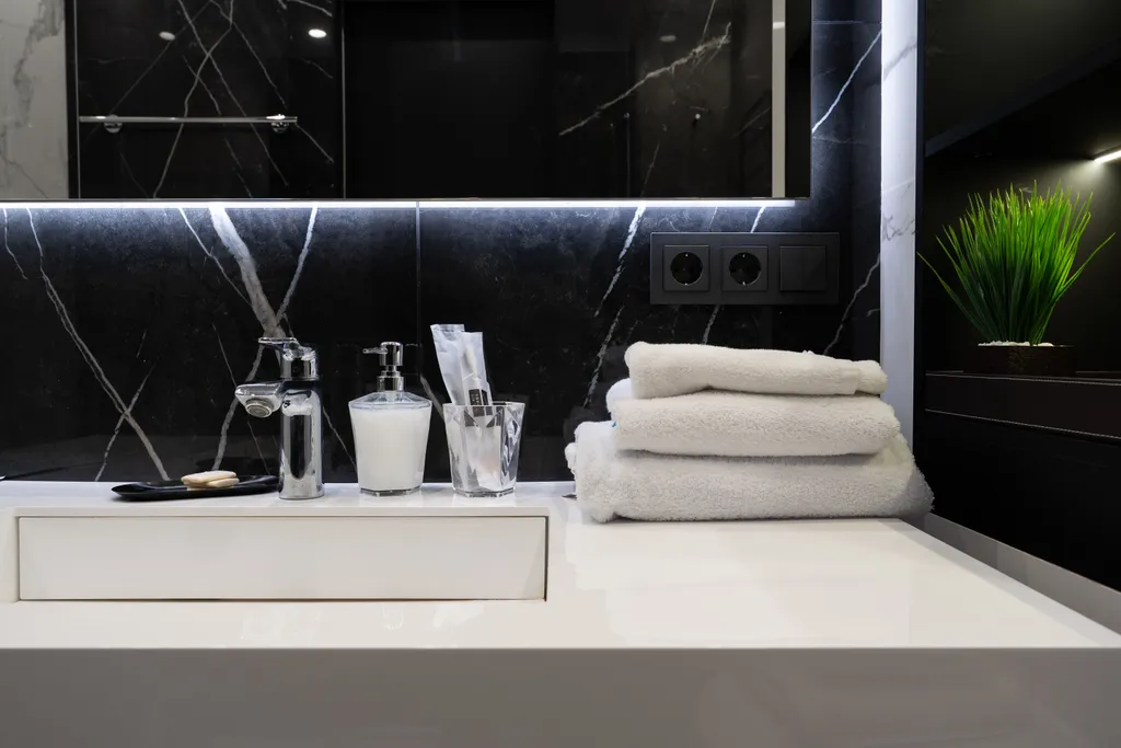 Совмещенный санузел с комфортной ванной и тропическим душем, также предусмотрены средства личной гигиены, полотенца, мыло, шампунь и гель для душа.