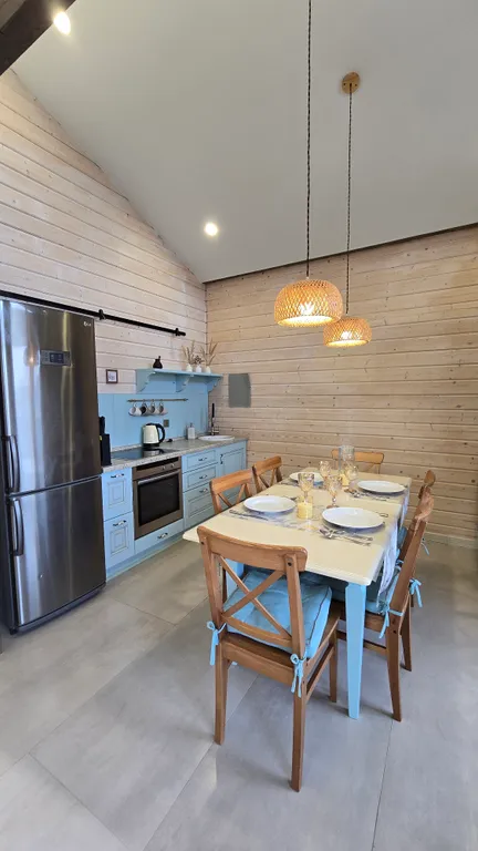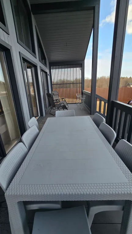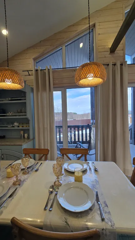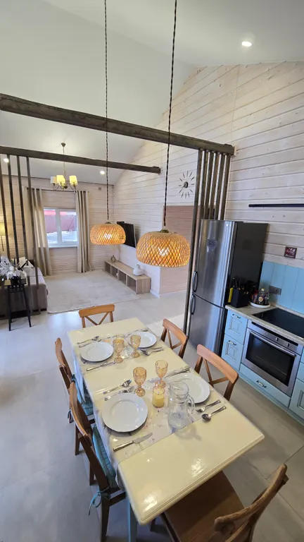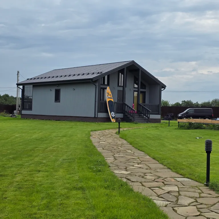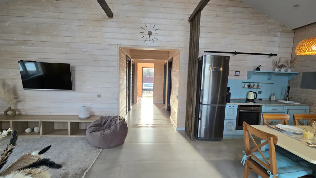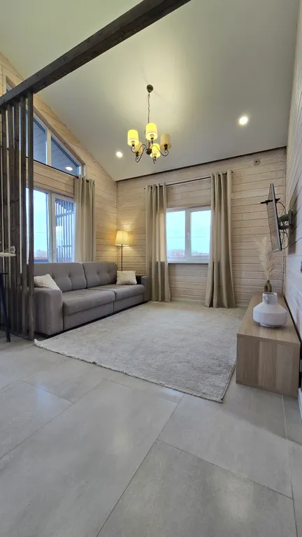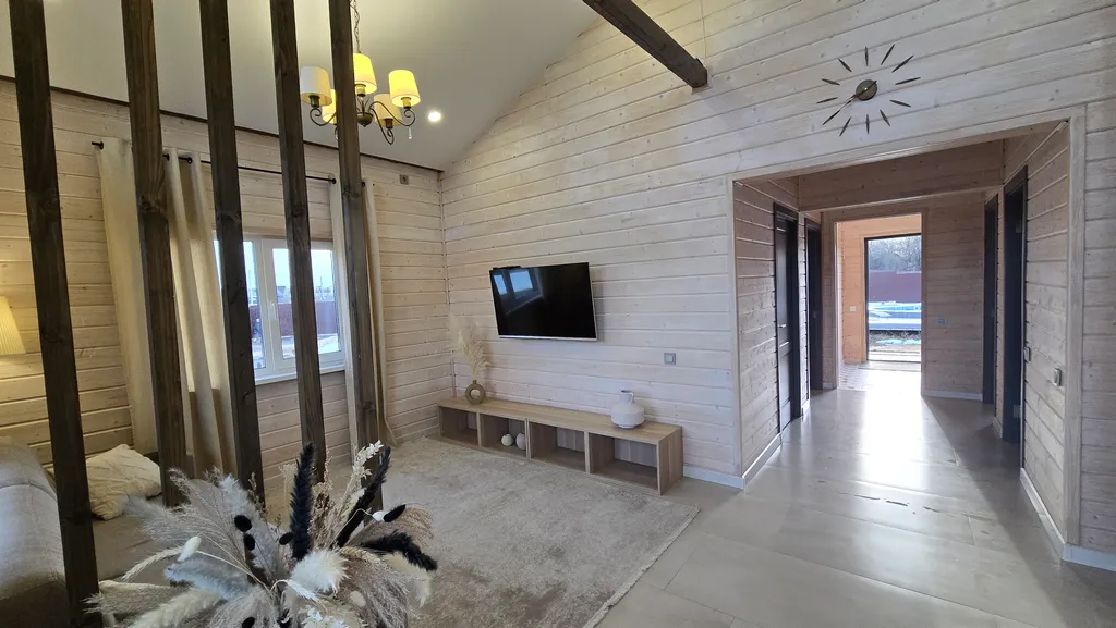 Убежище от городской осенней слякоти: Новый просторный дом(100 м²), построенный из экологичного дерева, с панорамными окнами, чтобы не пропустить ни одного оттенка золотой осени. Теплые полы по всему дому, уютная терраса для вечерних чаепитий и всё для релакса.