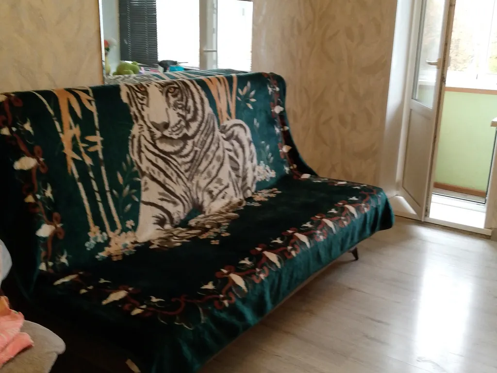 Диван расправляется загибом в противоположную сторону, металлический щелчок без применения силы. Второе бельё в шкафу.