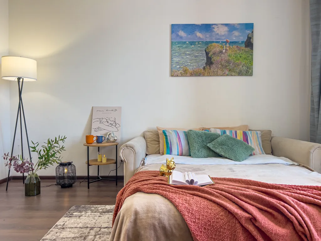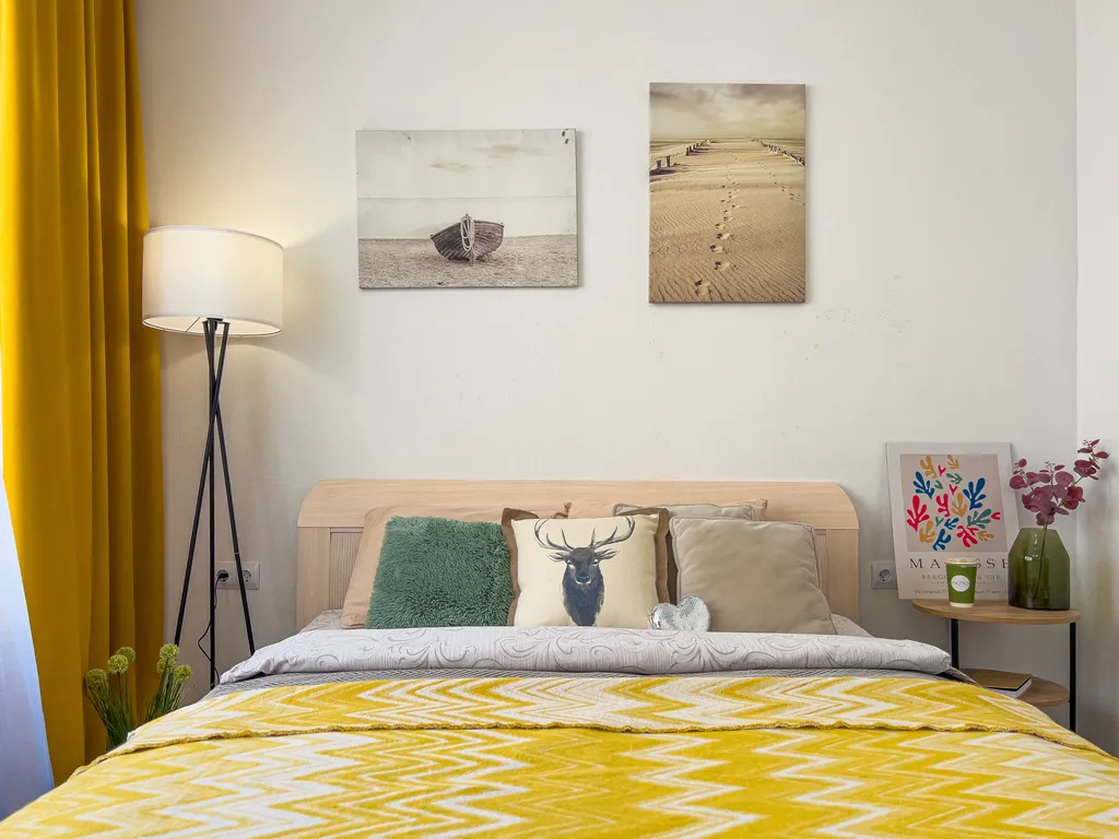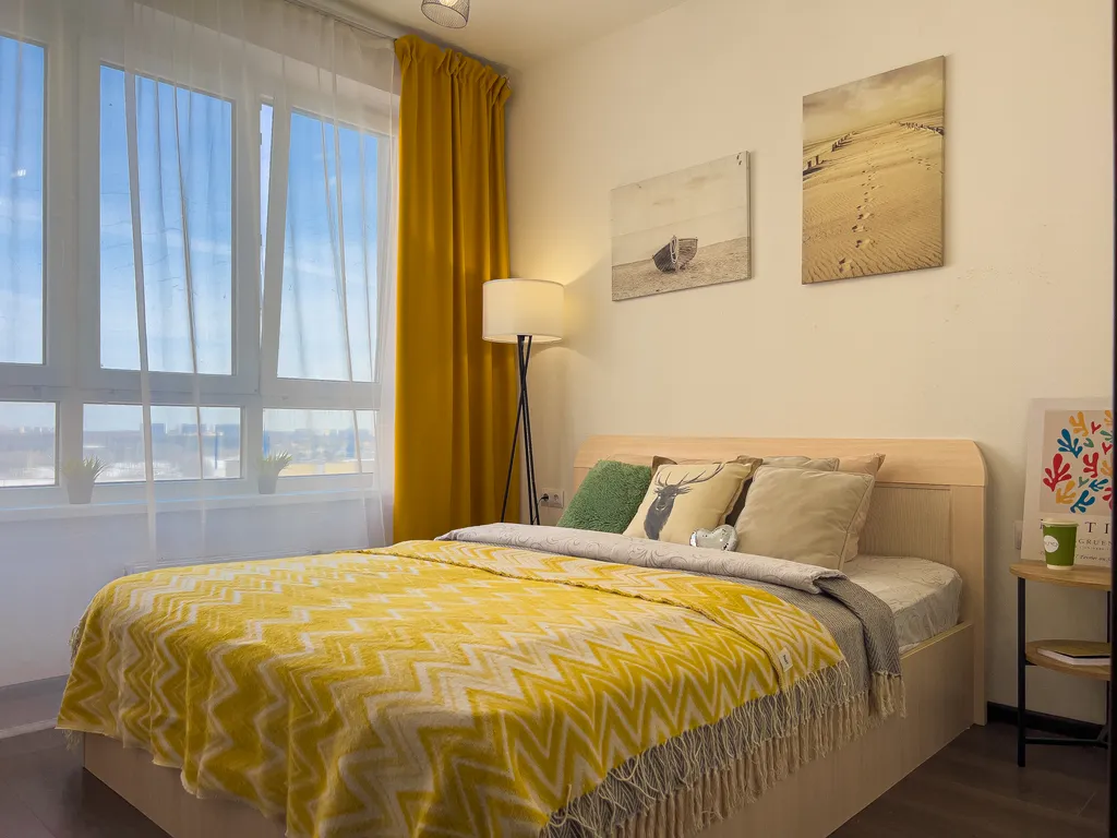 - Спальных мест 4 - двуспальная кровать и двухместный диван-кровать;
