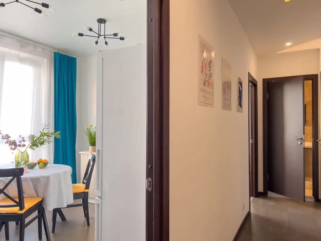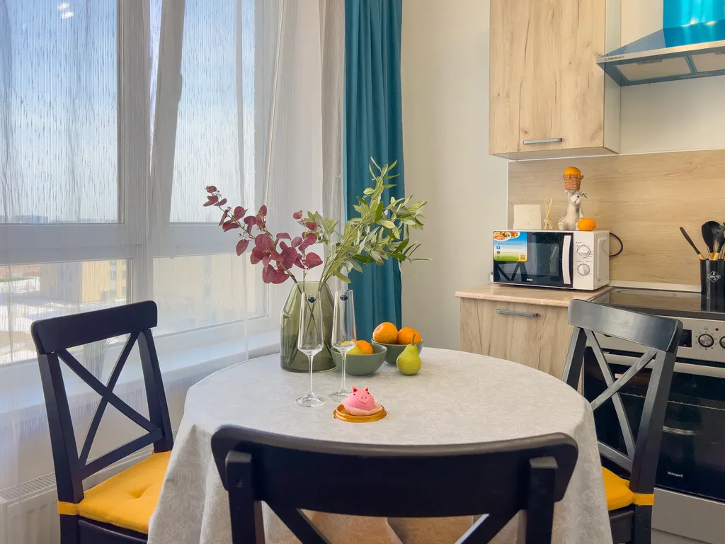 Квартира оборудована всей необходимой мебелью и техникой для проживания 5 человек: