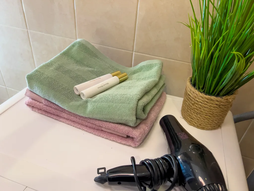 - Постельное белье, полотенца, гладильная доска, сушилка, средства гигиены, набор посуды;