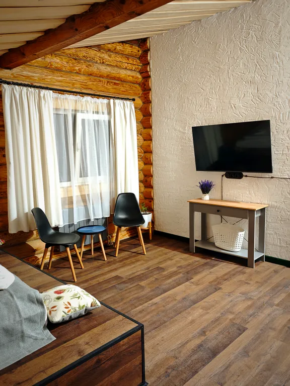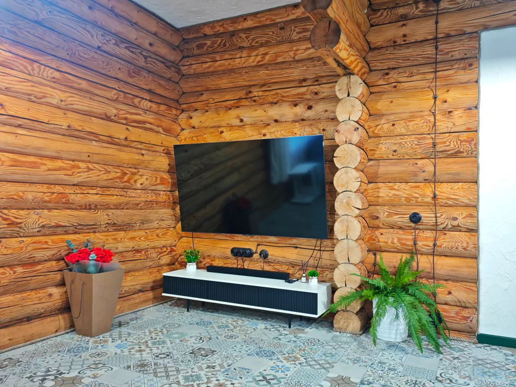 Оснащение комнат: ТВ, Wi-Fi, большой домашний кинотеатр и караоке в гостиной.