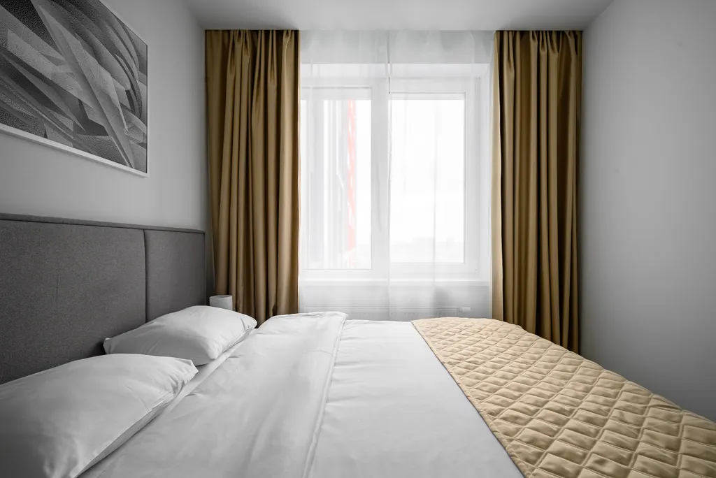 В спальне одна двуспальная или две односпальных кровати на выбор;