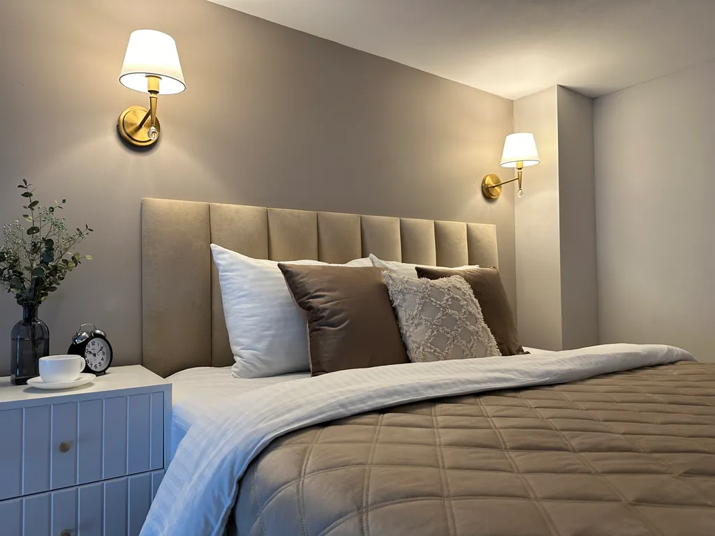 В апартаментах для пользования гостей - постельное белье, полотенца, туалетно-косметические принадлежности, фен, посуда, чай и кофе. Так же в апартаментах предусмотрена ежедневная уборка, но если вы хотите, чтобы вас не беспокоили, то можете просто повесить соответствующий знак на ручку двери.