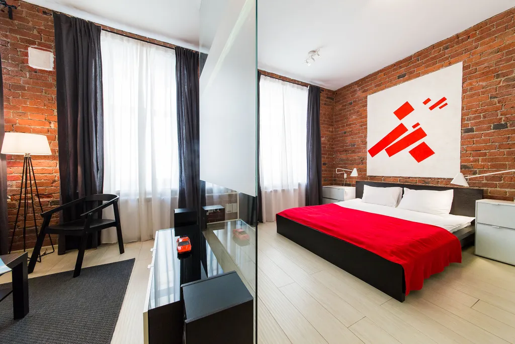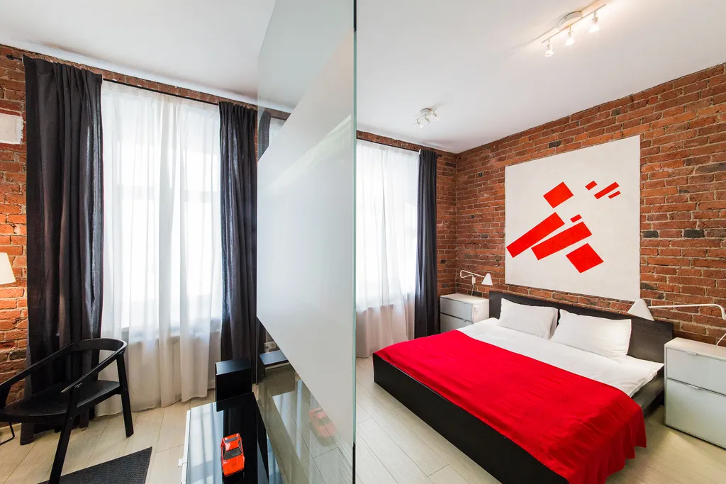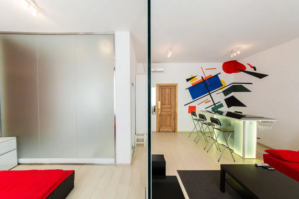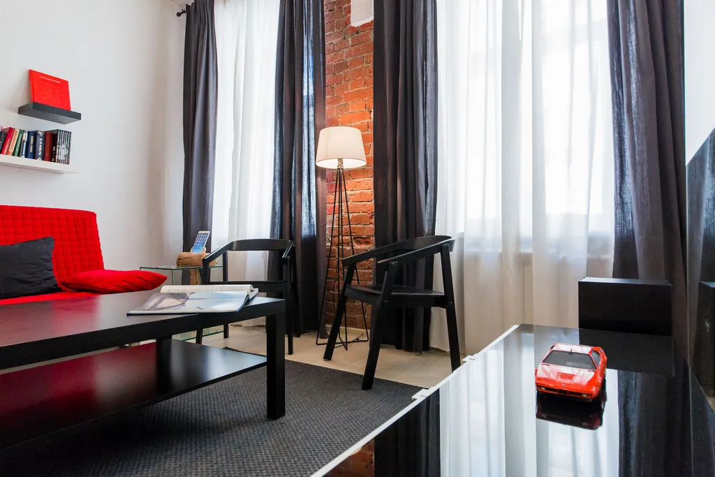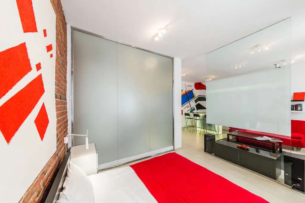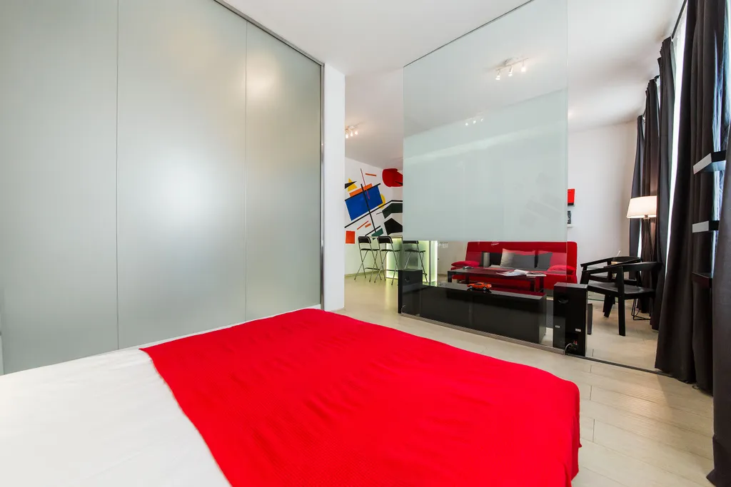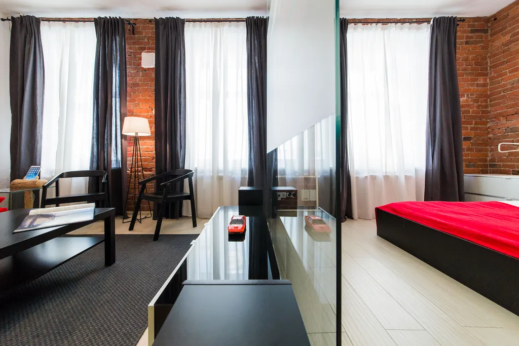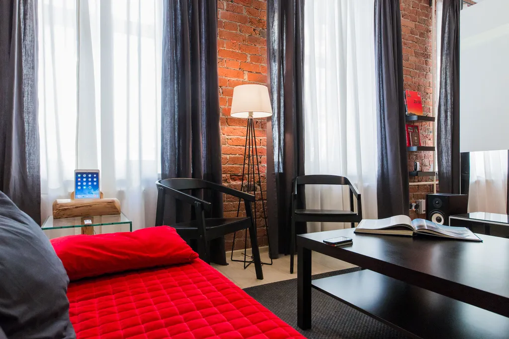 В нашей студии площадью в 45 кв.м. Вы найдете: 4 комфортных спальных мест, душ, фен, барную стойку, холодильник и микроволновку, утюг и гладильную доску, домашний кинотеатр, стереосистему, Apple TV, 110-тв.каналов на проекции диагональю 3,5 метра, мини-библиотеку - от комиксов Эрже до поучений аввы Дорофея (а так же огромные альбомы по фото и живописи), бесплатный 30-мегабитный wi-fi и все это в непосредственной близости от Чистых прудов, Кремля и, разумеется, бесконечного количества уютных кафе и баров.