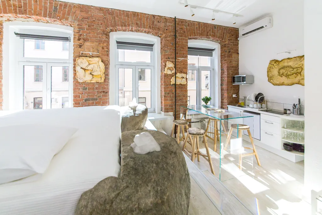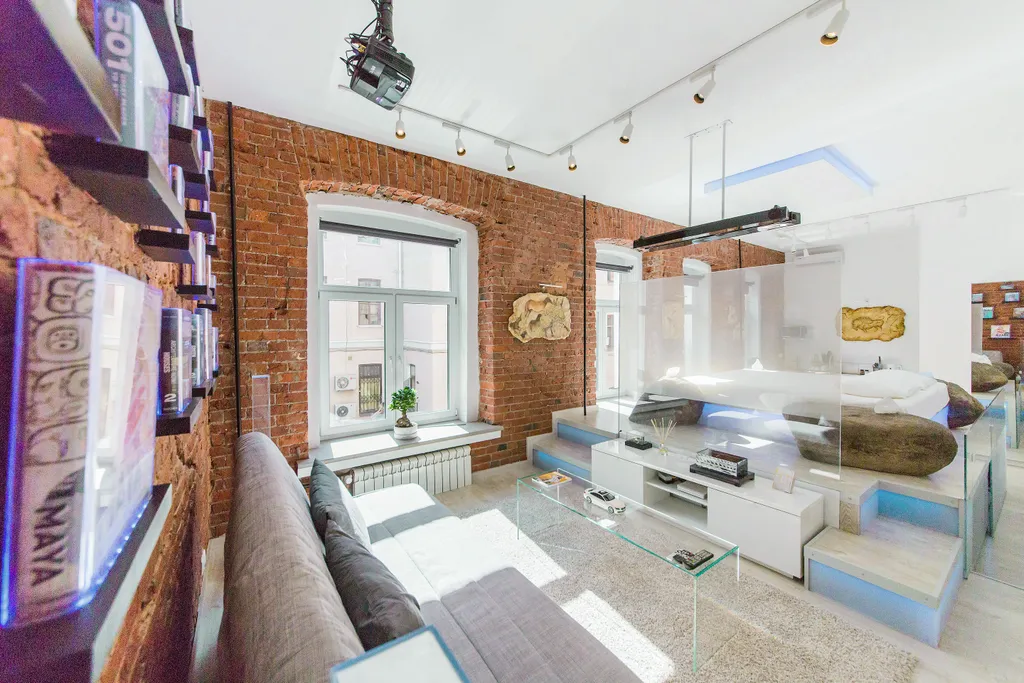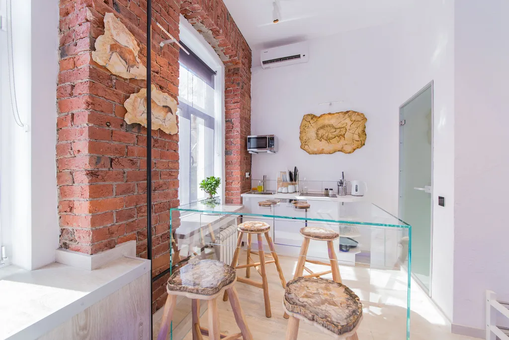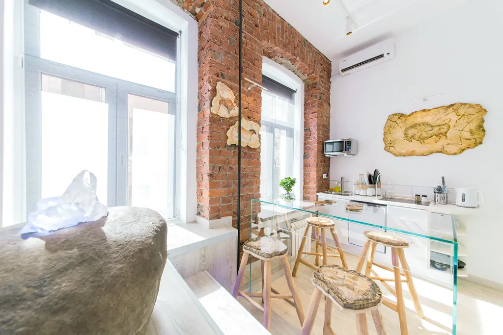 В нашей студии площадью в 48 кв.м. Вы найдете: 4 комфортных спальных мест, душ, фен, барную стойку, холодильник и микроволновку, утюг и гладильную доску, проектор, стереосистему, Apple TV, Ipad, мини-библиотеку - от комиксов Эрже до поучений аввы Дорофея (а так же огромные альбомы по фото и живописи), бесплатный wi-fi и все это в непосредственной близости от Чистых прудов, Кремля и, разумеется, бесконечного количества уютных кафе и баров.