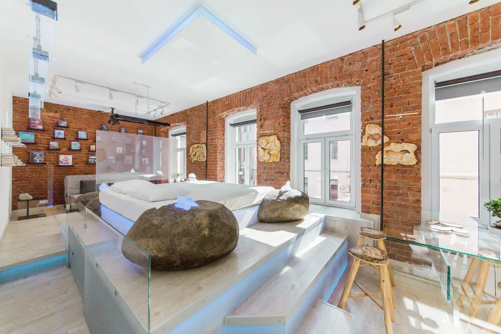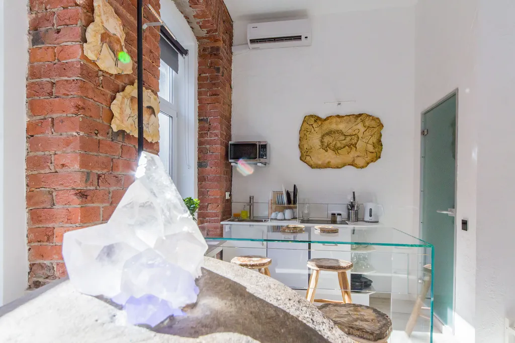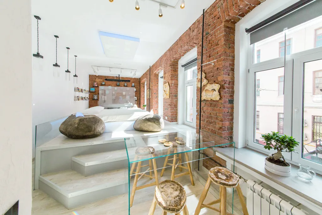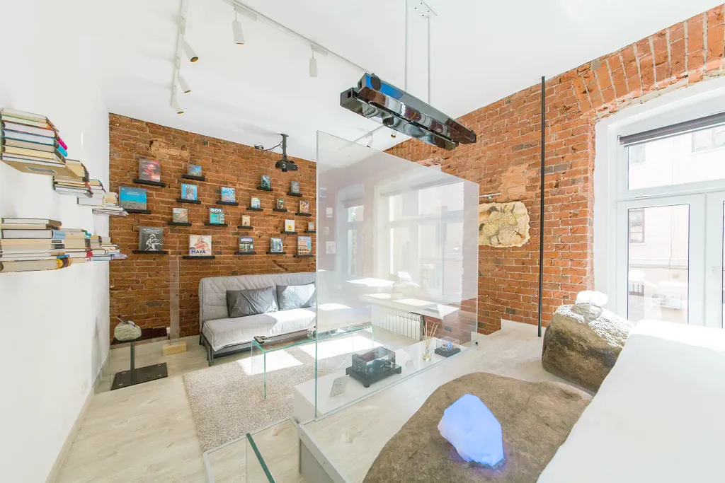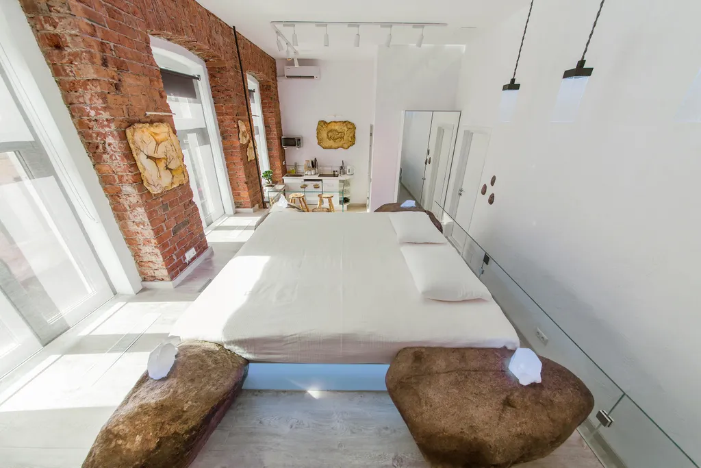 В нашей студии площадью в 48 кв.м. Вы найдете: 4 комфортных спальных мест, душ, фен, барную стойку, холодильник и микроволновку, утюг и гладильную доску, проектор, стереосистему, Apple TV, Ipad, мини-библиотеку - от комиксов Эрже до поучений аввы Дорофея (а так же огромные альбомы по фото и живописи), бесплатный wi-fi и все это в непосредственной близости от Чистых прудов, Кремля и, разумеется, бесконечного количества уютных кафе и баров.
