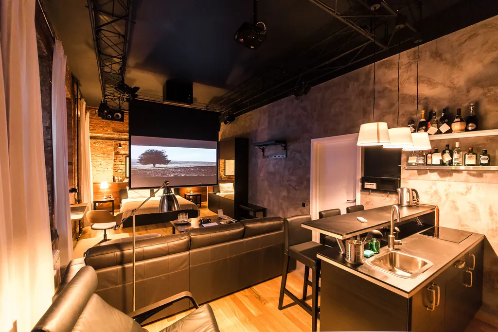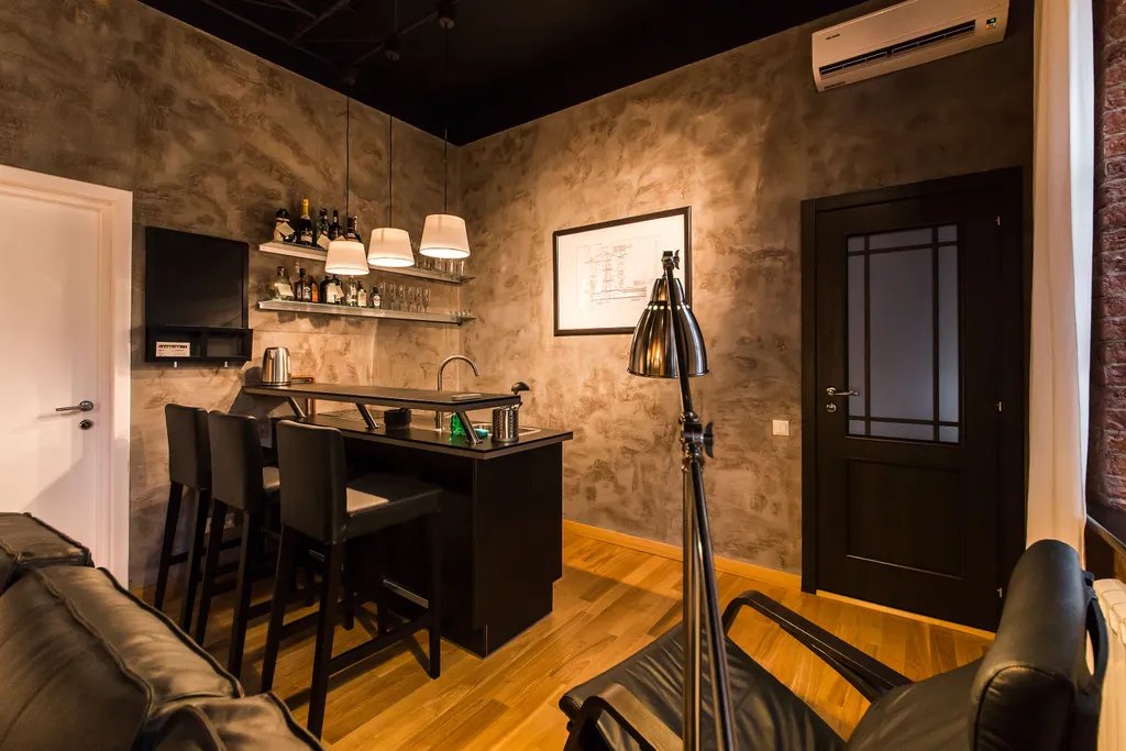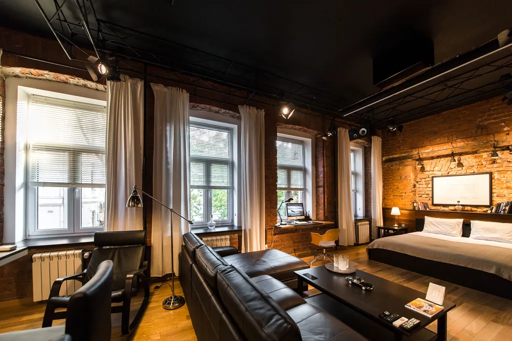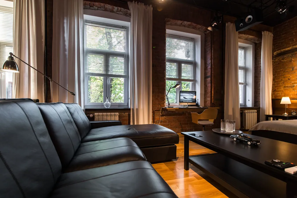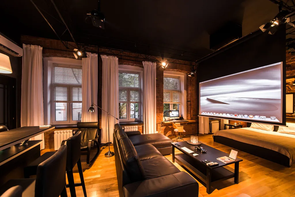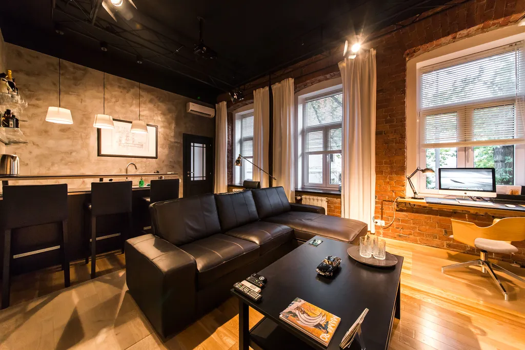 В нашей студии площадью в 46 кв.м. Вы найдете: 3 комфортных спальных мест, душ, фен, барную стойку, холодильник и микроволновку, утюг и гладильную доску, проектор, стереосистему, Apple TV, Imac, мини-библиотеку - от комиксов Эрже до поучений аввы Дорофея (а так же огромные альбомы по фото и живописи), бесплатный wi-fi и все это в непосредственной близости от Чистых прудов, Кремля и, разумеется, бесконечного количества уютных кафе и баров.
