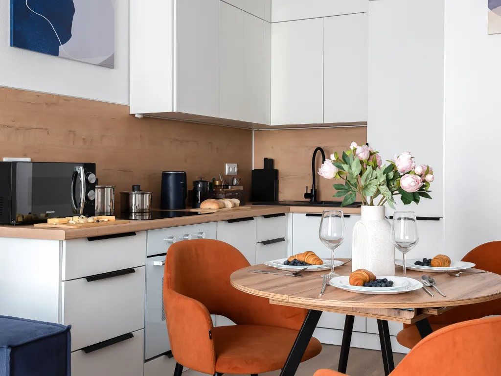 - Кухня с полным набором техники, включая посудомоечную машину