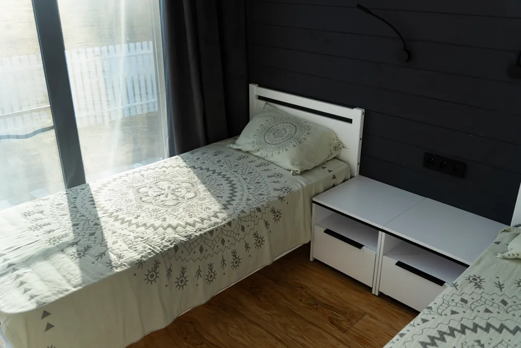 Две изолированные комнаты: мастер-спальня с двуспальной кроватью и спальня с двумя односпальными кроватями