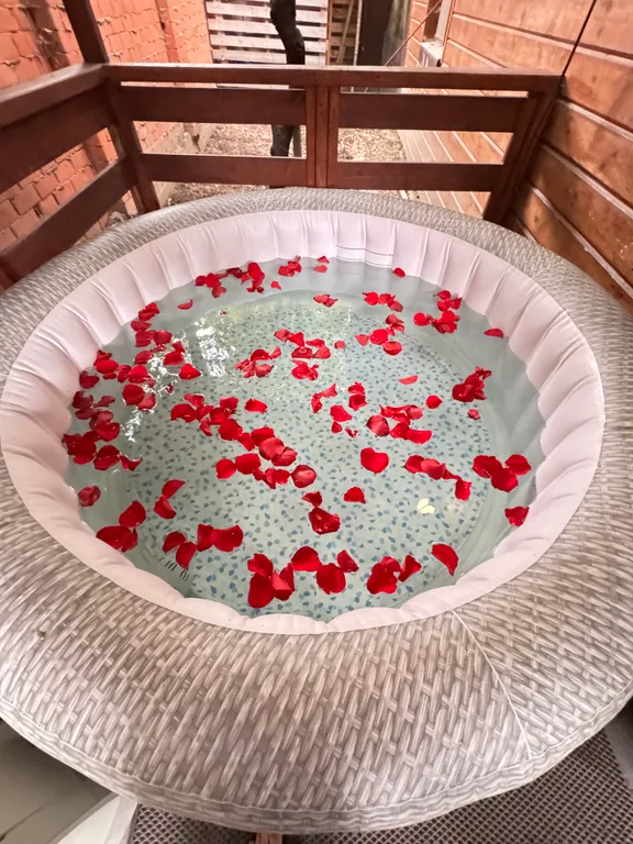 Джакузи — бассейн на улице с подогревом до 40 градусов (можно купаться в любую погоду — будет жарко). Стоимость джакузи — 5000 ₽ в сутки, последующие сутки — 2000 ₽.