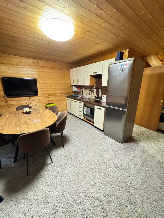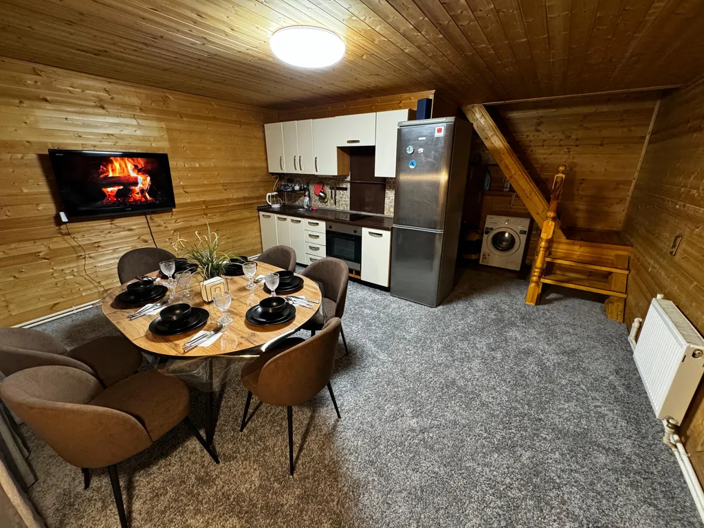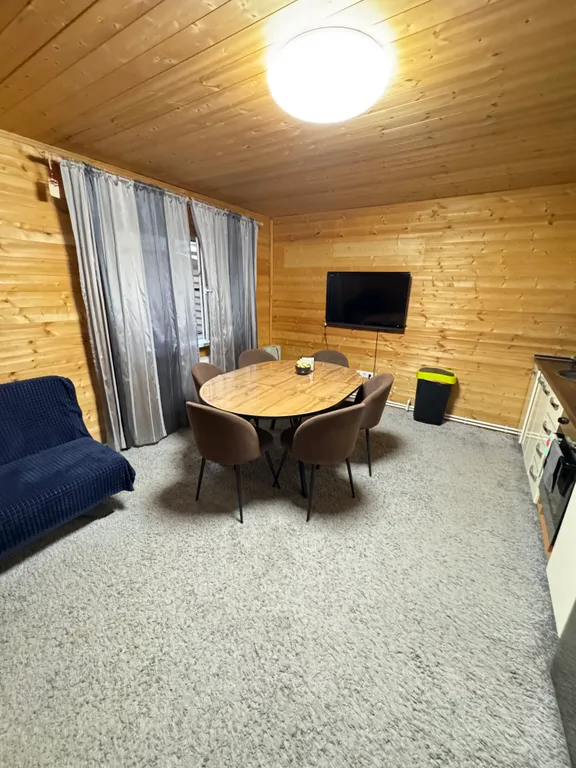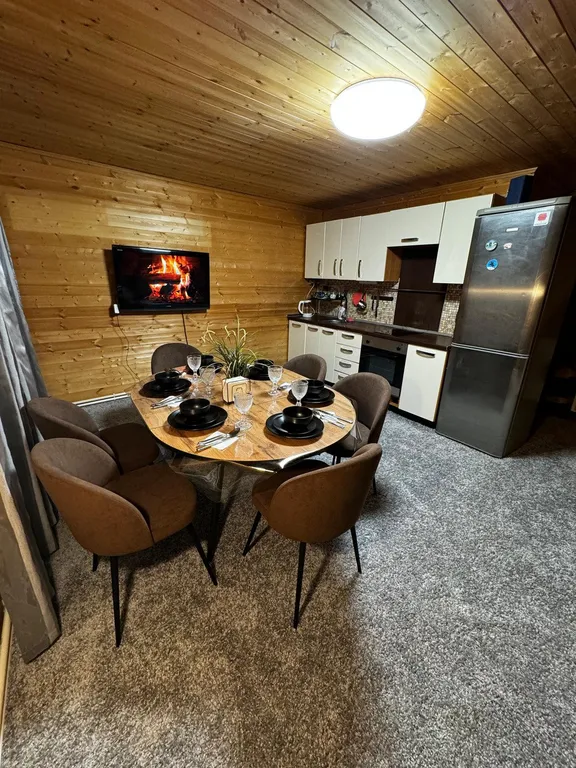 Две изолированные спальни с 2-спальными кроватями. На первом этаже — кухня-гостиная, стол на 6 персон. Есть яндекс тв и колонка «алиса» 30w.