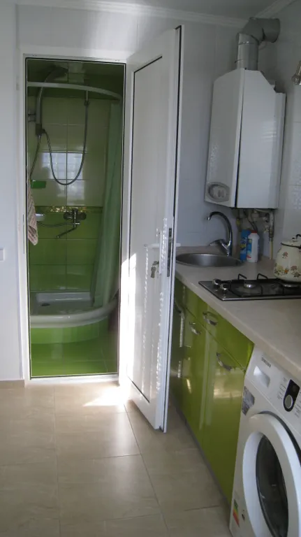Санузел (душ, туалет, умывальник). Всегда горячая вода (двухконтурный котел). Тёплые полы в санузле и на кухне. Вода, канализация, газ- все магистральное. Спутниковое телевидение, интернет, телефон.