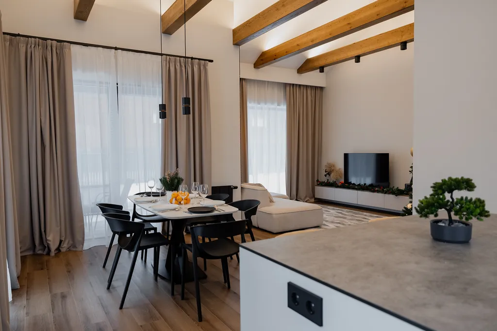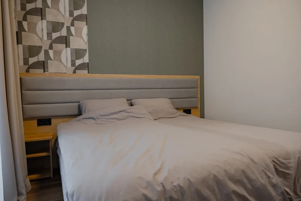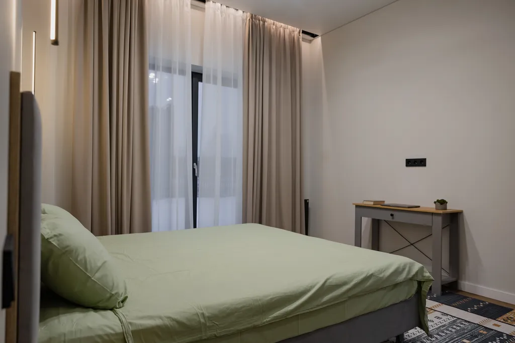 - 3 спальни. Мастер-спальня со своим санузлом и гардеробом и 2 изолированные спальни. Кровати king-size 180×200 с хорошими матрасами, при необходимости раздвигаются на односпальные