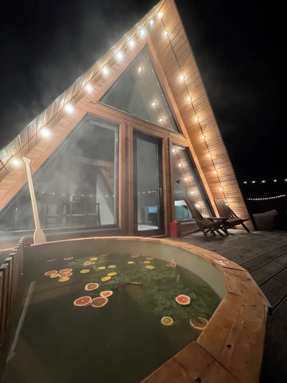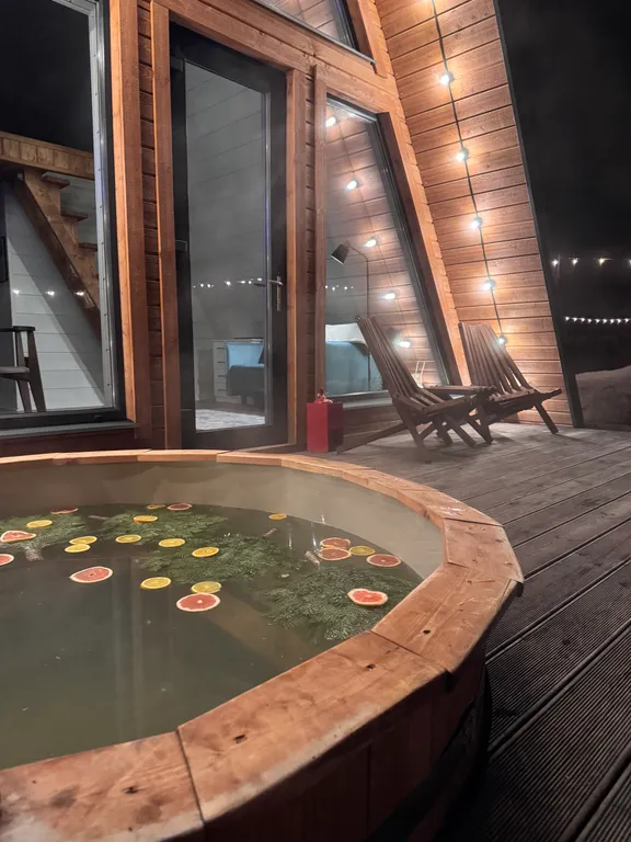 Горячая купель под открытым небом. Расслабьтесь после долгих прогулок в собственной купели, установленной прямо на просторной террасе. Наслаждайтесь звездами и пением птиц, не выходя из теплой воды.