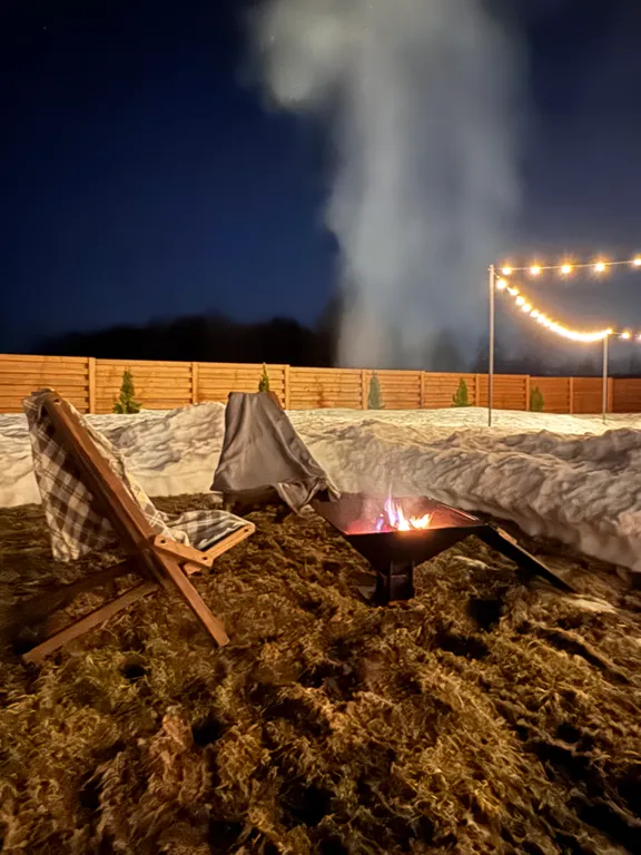 Костер — уютные кресла и чаша. Дрова предоставляем, дополнительные — 300 ₽ за вязанку.