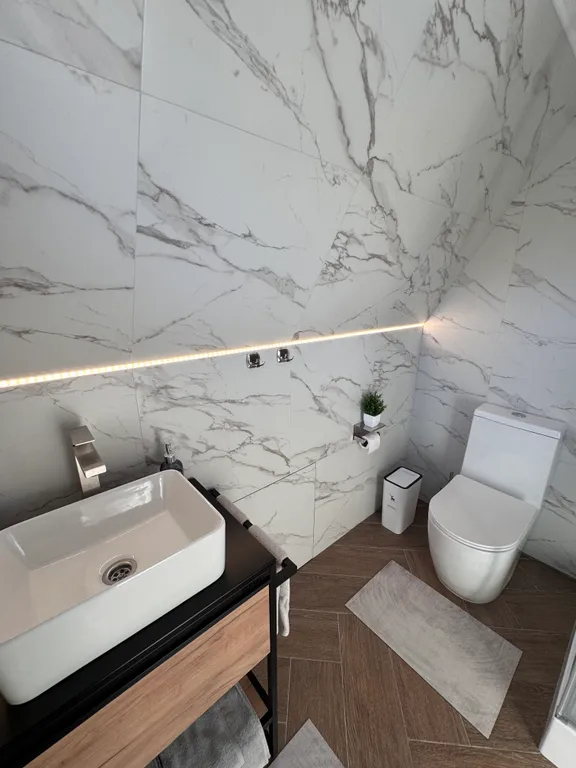 Домик оборудован теплыми полами