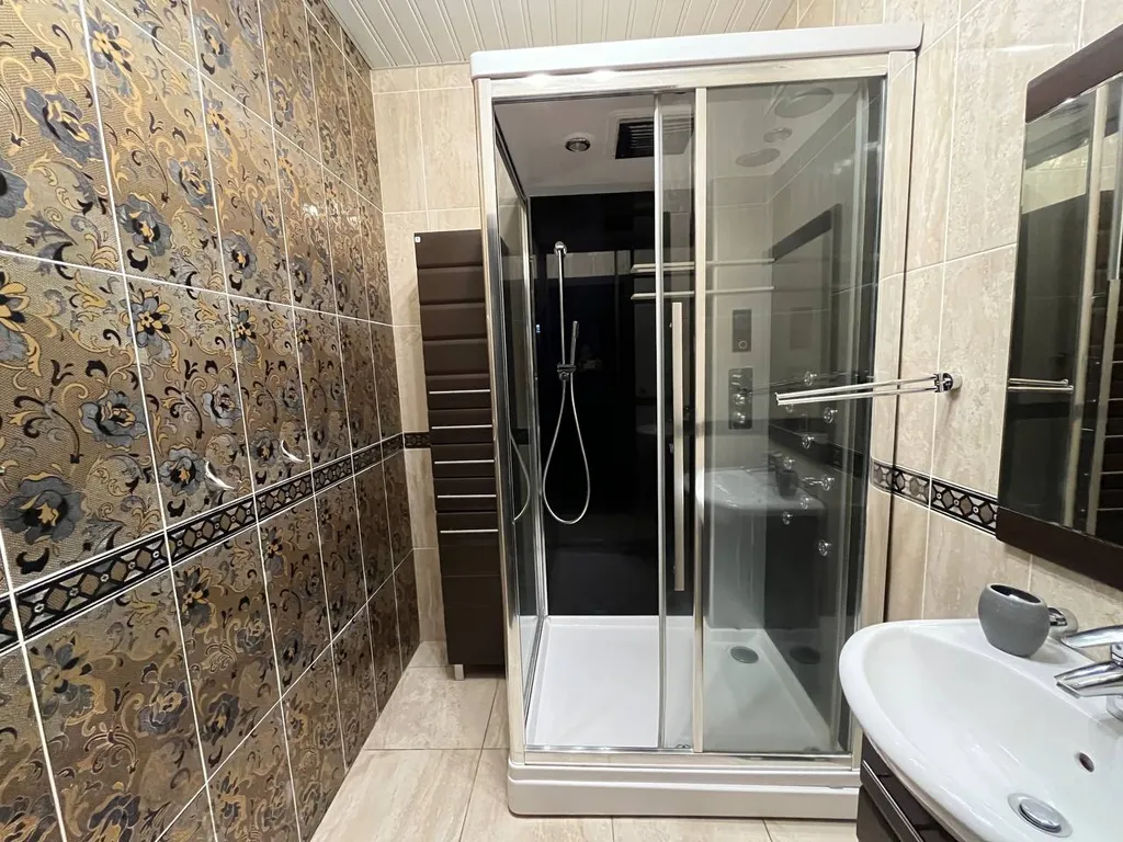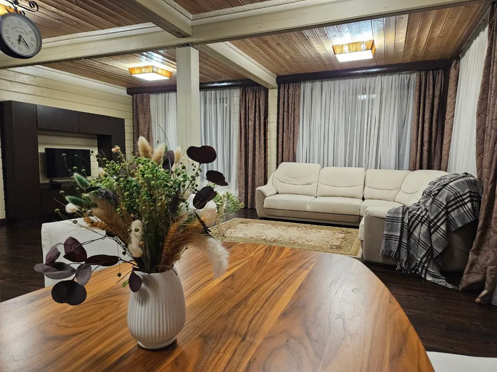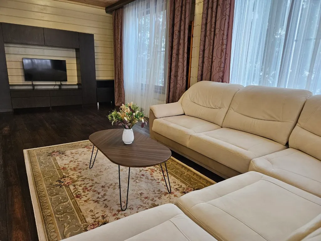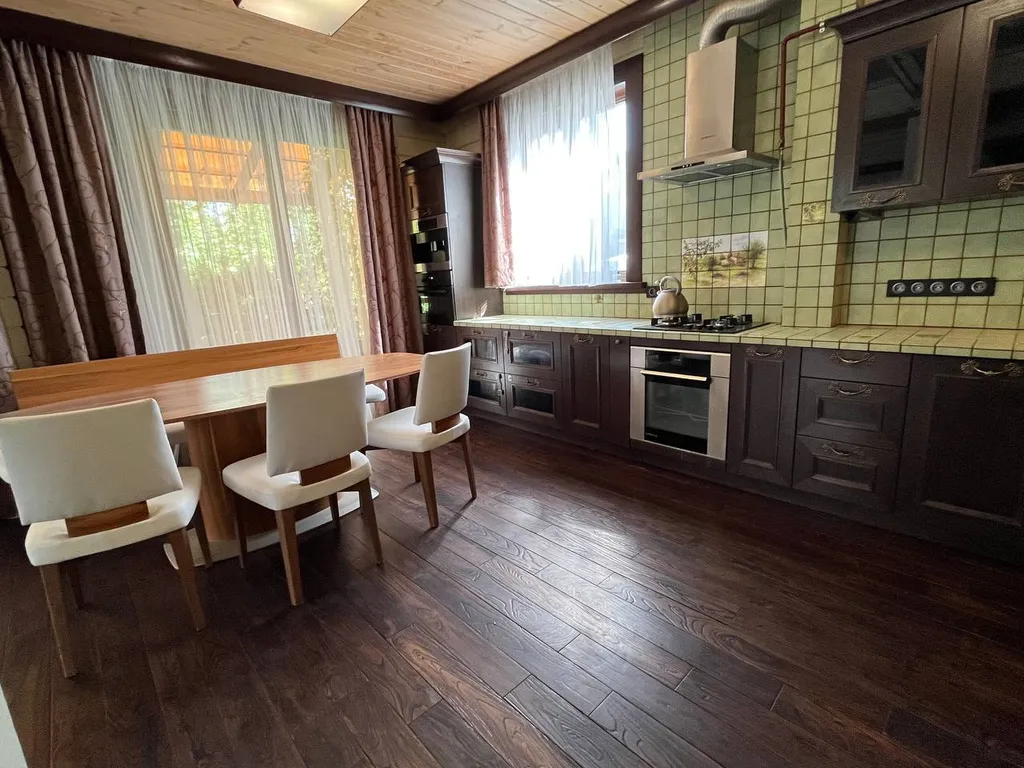 В доме: 1 этаж: кухня + гостиная, кабинет, спальня, санузел, душевая, терраса с выходом в барбекю зону. 2 этаж: 3 спальни, санузел, ванная комната, душевая, постирочная.