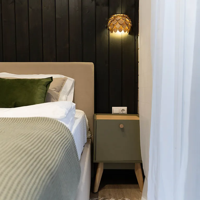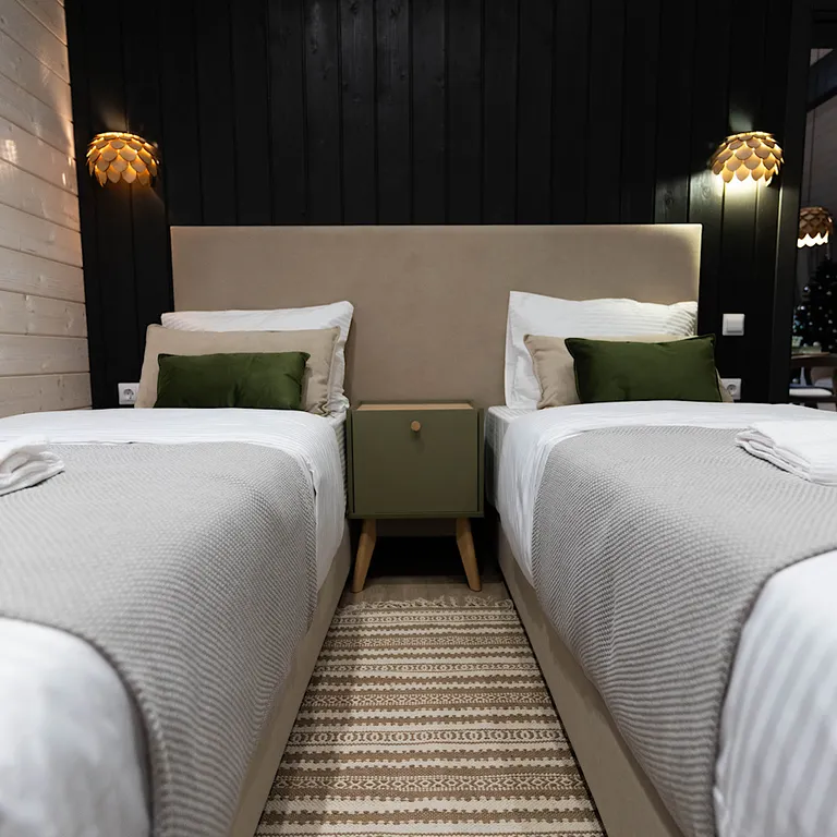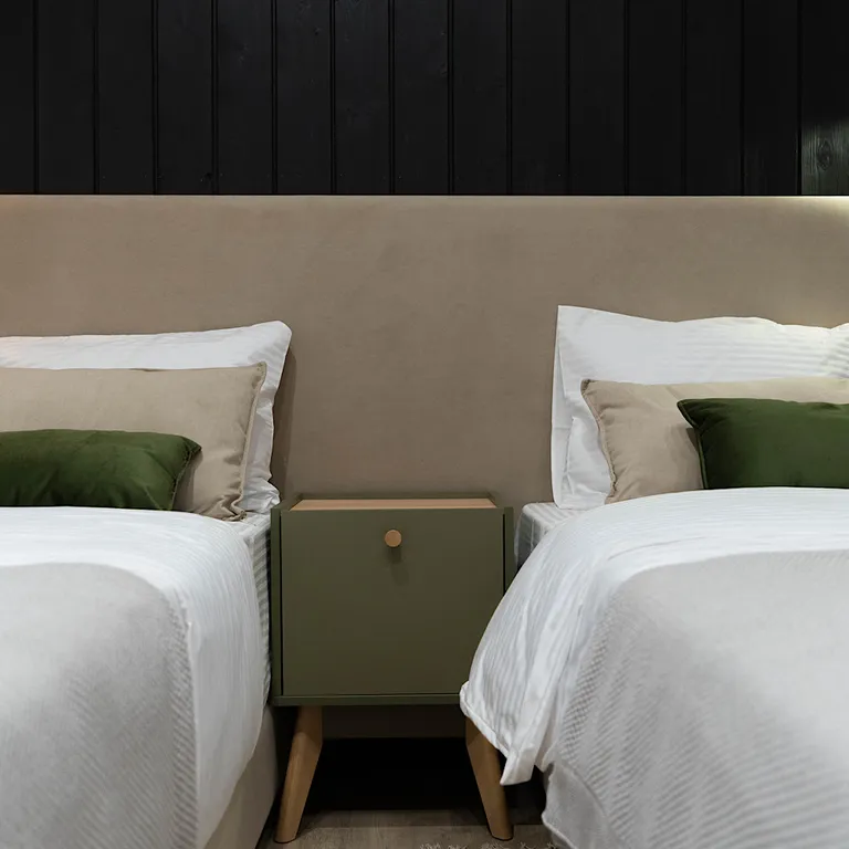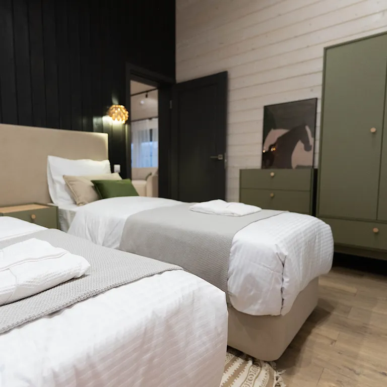 1 спальня с спринбоксами, которые можно использовать как двуспальную кровать и как две раздельные