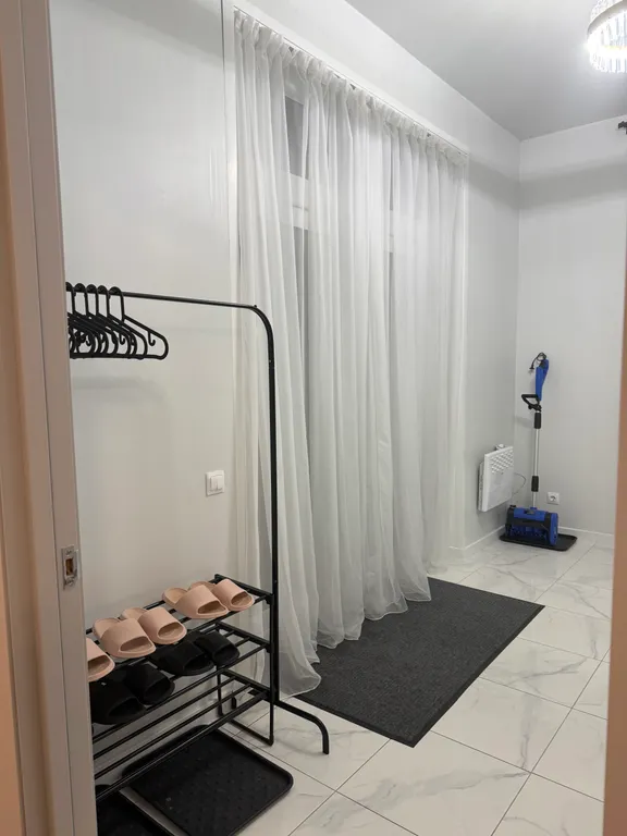 Запрещено ходить в доме в уличной обуви, везде тёплые полы и ходить можно хоть босиком
