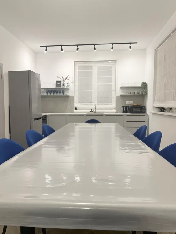 Дом подходит под проведение банкетов, праздников и дней рождения. Можем разместить 12 человека за большим столом (6х1м)