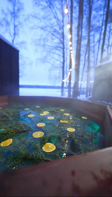 насладитесь идеальным релаксом! после прогулки по лесу или катания на sup согрейтесь в собственной сауне и погрузитесь в горячий банный чан под открытым небом. ваше приватное спа прямо на берегу.