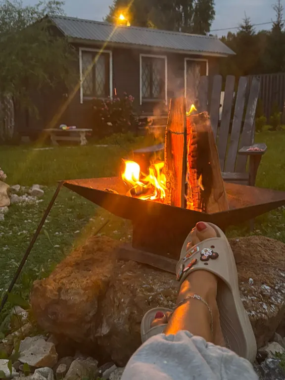 Костровая чаша с креслами и видом на альпинарий добавит праздничного настроения, дрова для дома, костровой зоны и мангала предоставляются бесплатно, угли нужно привозить с собой.